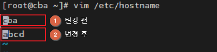 아래와 같이 명령어를 실행하면 hostname이 cba로 변경됩니다.