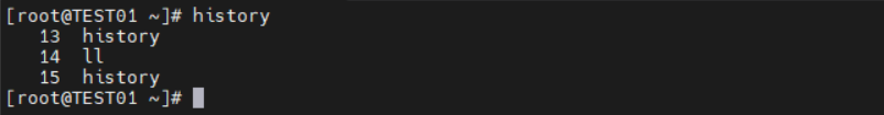 | [root@TEST01 ~]# history 13 history 14 ll 13 history |