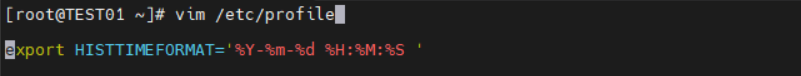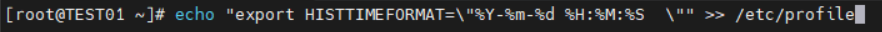 | 명령어 : echo "export HISTTIMEFORMAT=\"%Y-%m-%d %H:%M:%S \"" >> /etc/profile |