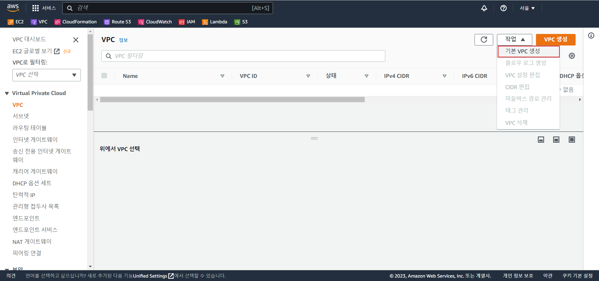 3_1) 작업 > 기본 VPC 생성
