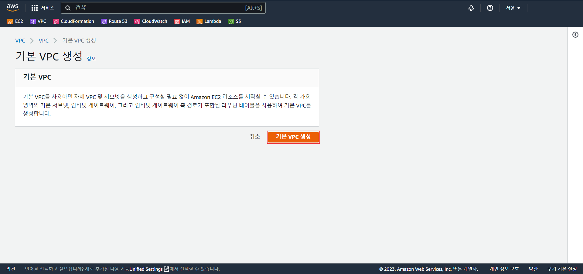 3_2) 기본 VPC 생성