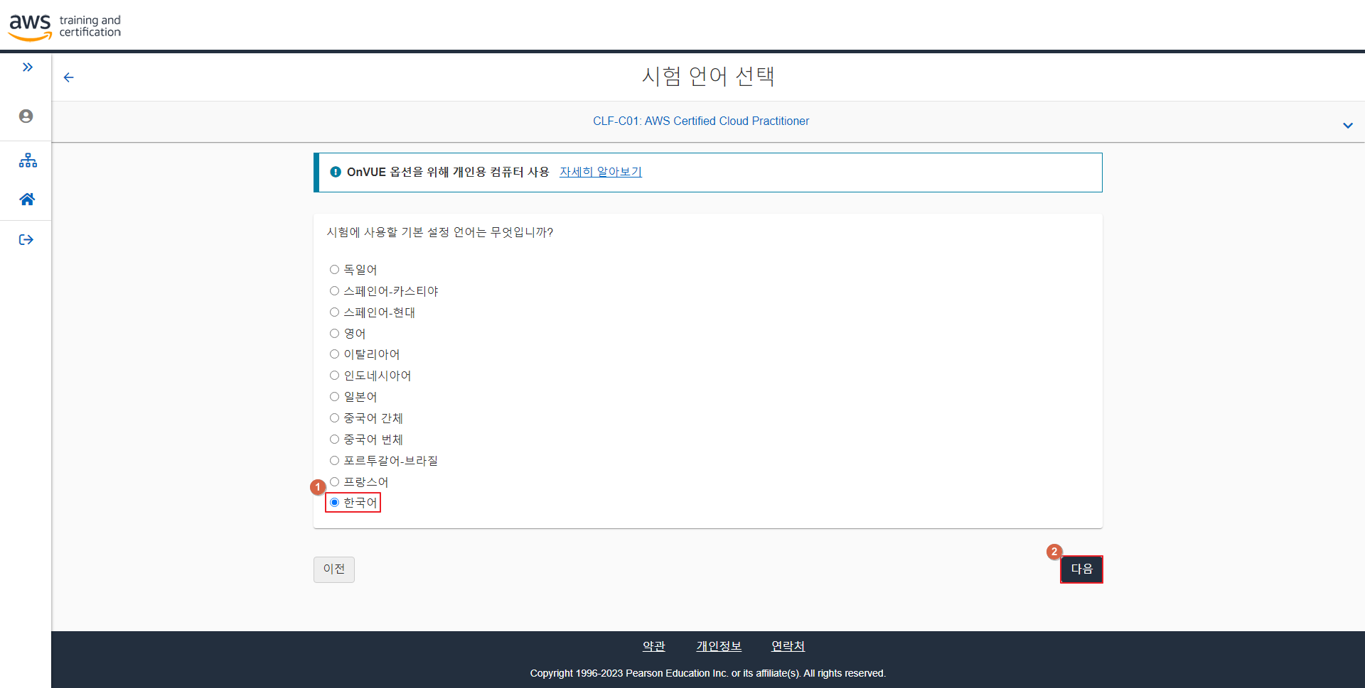 10) 온라인 시험 및 Amazon Web Services 정책에 동의