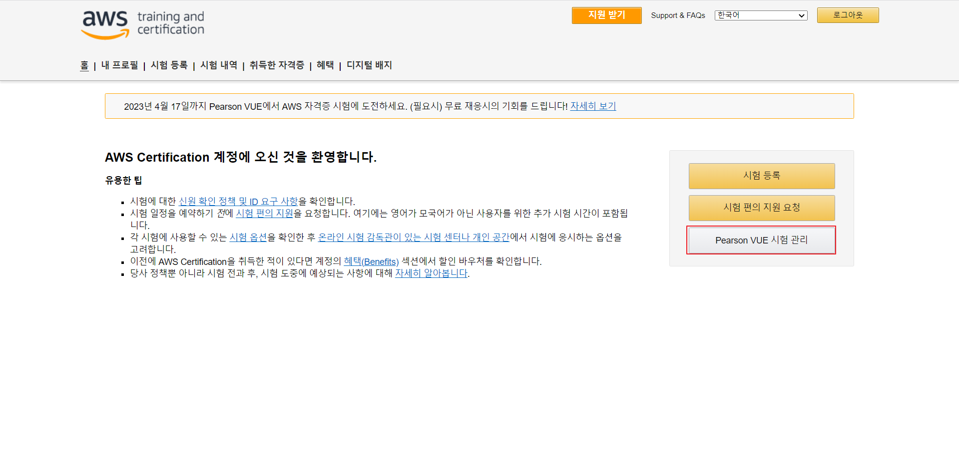 1) Pearson VUE 시험 관리