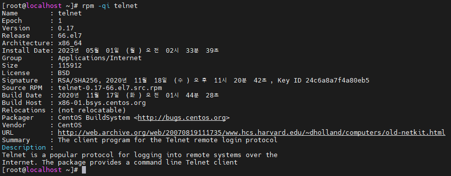 | 리눅스 CentOS7 TELNET 설치 방법 (0) | 2023.05.01 |