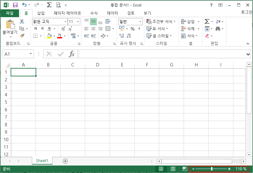 - 엑셀 하단의 상태 표시줄 오른쪽에 있는 확대/축소 버튼을 사용하면 간단히 화면 크기를 조정할 수 있습니다.
