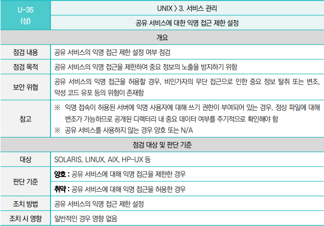 [U-35] 공유 서비스에 대한 익명 접근 제한 설정 (중요도 : 상) 본문