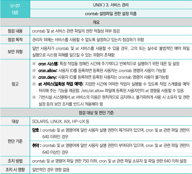 [U-37] crontab 설정파일 권한 설정 미흡 (중요도 : 상) 본문