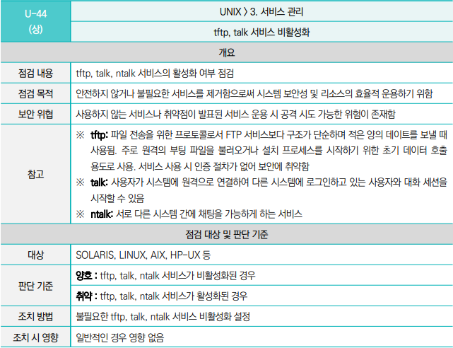[U-44] tftp, talk 서비스 비활성화 (중요도 : 상) 본문