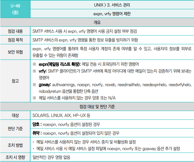 [U-48] expn, vrfy 명령어 제한 (중요도 : 중) 본문