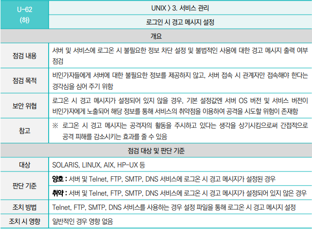 주요정보통신기반시설 가이드 [U-62] 유닉스/리눅스 보안 설정