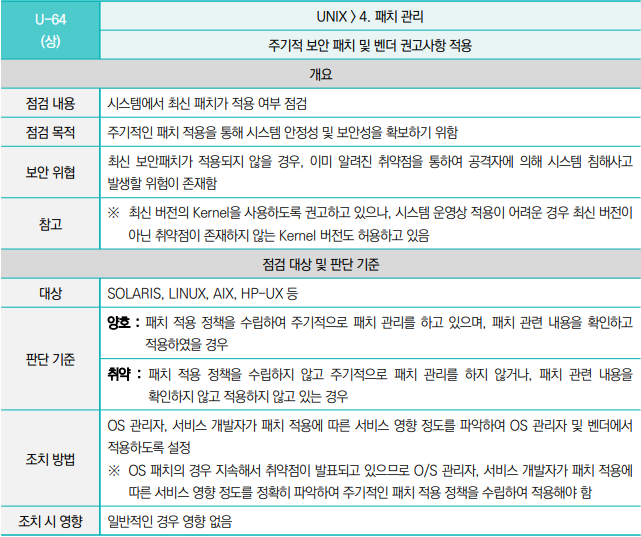 [U-64] 주기적 보안 패치 및 벤더 권고사항 적용 (중요도 : 상) 본문